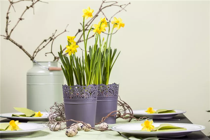 Je nach Pflanzenart brauchen die Zwiebeln 4 bis 6 Wochen bis sie im Haus blühen. Schon beim Antreiben können Sie darauf achten, schöne Blumenkombinationen zu pflanzen. Eine harmonische Farbzusammenstellung macht viel aus. Die Blüte hält etwa ein bis zwei Wochen an. Ihre Lebensdauer richtet sich nach der Zimmertemperatur. Je wärmer es ist, desto schneller entwickeln sich die Blumen und verblühen. Mehr als 20 °C sollten nicht herrschen. Selbst wenn Kälte die Lebensdauer fördert: Frost vertragen die Frühblüher nicht. Deshalb werden sie auch erst nach dem letzten Frost ausgepflanzt, sofern Sie die Pflanzen im nächsten Jahr im Garten wieder blühen sehen wollen.