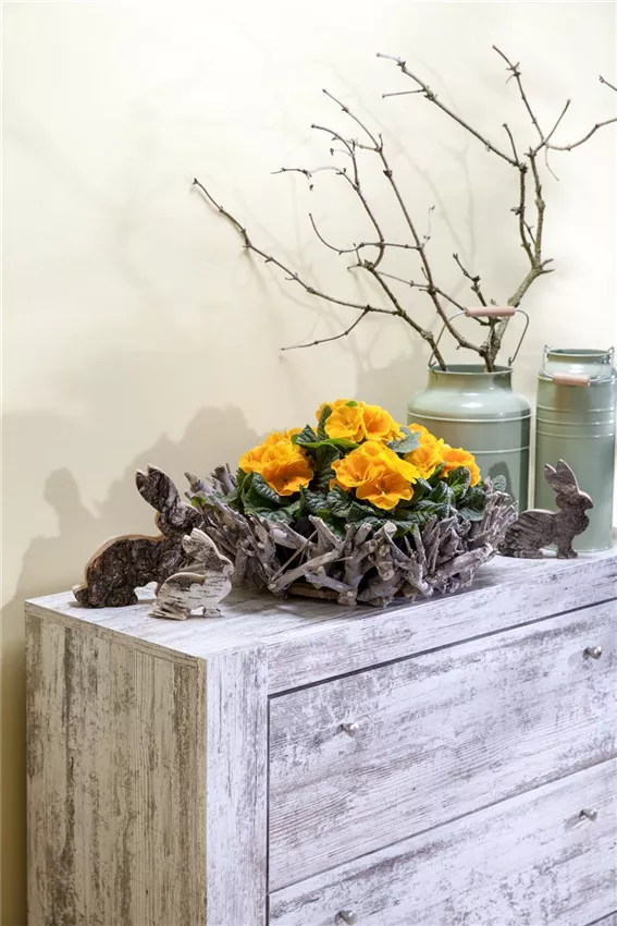 Das Gefäß mit den Blumenzwiebeln stellen Sie nun einfach draußen an einem geschützten Ort auf. Dort bleibt es bis zum kommenden Frühjahr stehen. Die Blumenzwiebeln müssen nicht zur Überwinterung ins Haus geholt werden. Im Gegenteil: Es geht gerade darum, dass sie den Frost miterleben. Zwiebelblumen brauchen den kurzen Kältestoß, um später gut zu gedeihen. Blumenzwiebeln im Garten geht es genauso wie den angetriebenen Zwiebeln in Ihrem Gefäß. Erst ab März holen Sie die Töpfe nach und nach ins Haus.